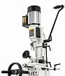 Подача сверла-резца производится длинной рукояткой, высоту которой можно настроить в зависимости от толщины заготовки и длины «долбяка». Вес подвижной части компенсирует газовый упор.